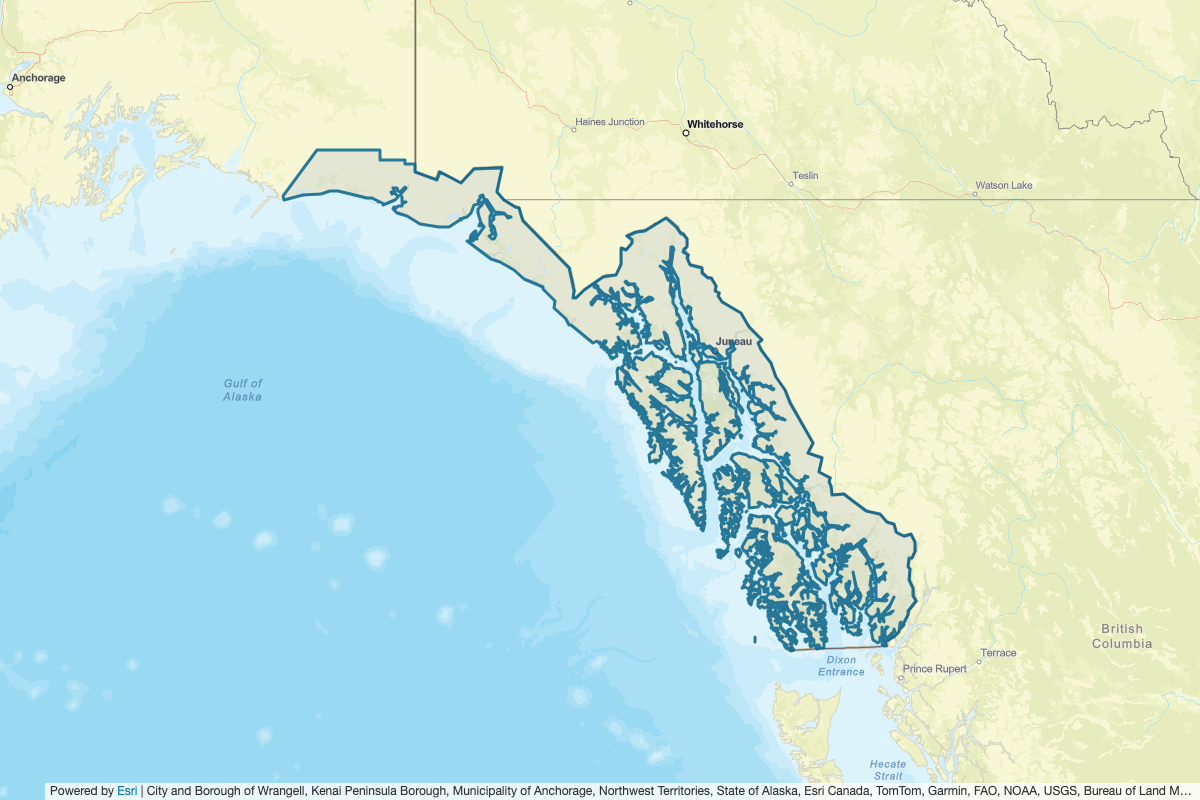 This includes Ketchikan Gateway, Chugach, Wrangell, Yakutat, Copper River, Skagway, Prince of Wales-Hyder, Petersburg Borough, Sitka, Haines, Juneau, and Hoonah-Angoon