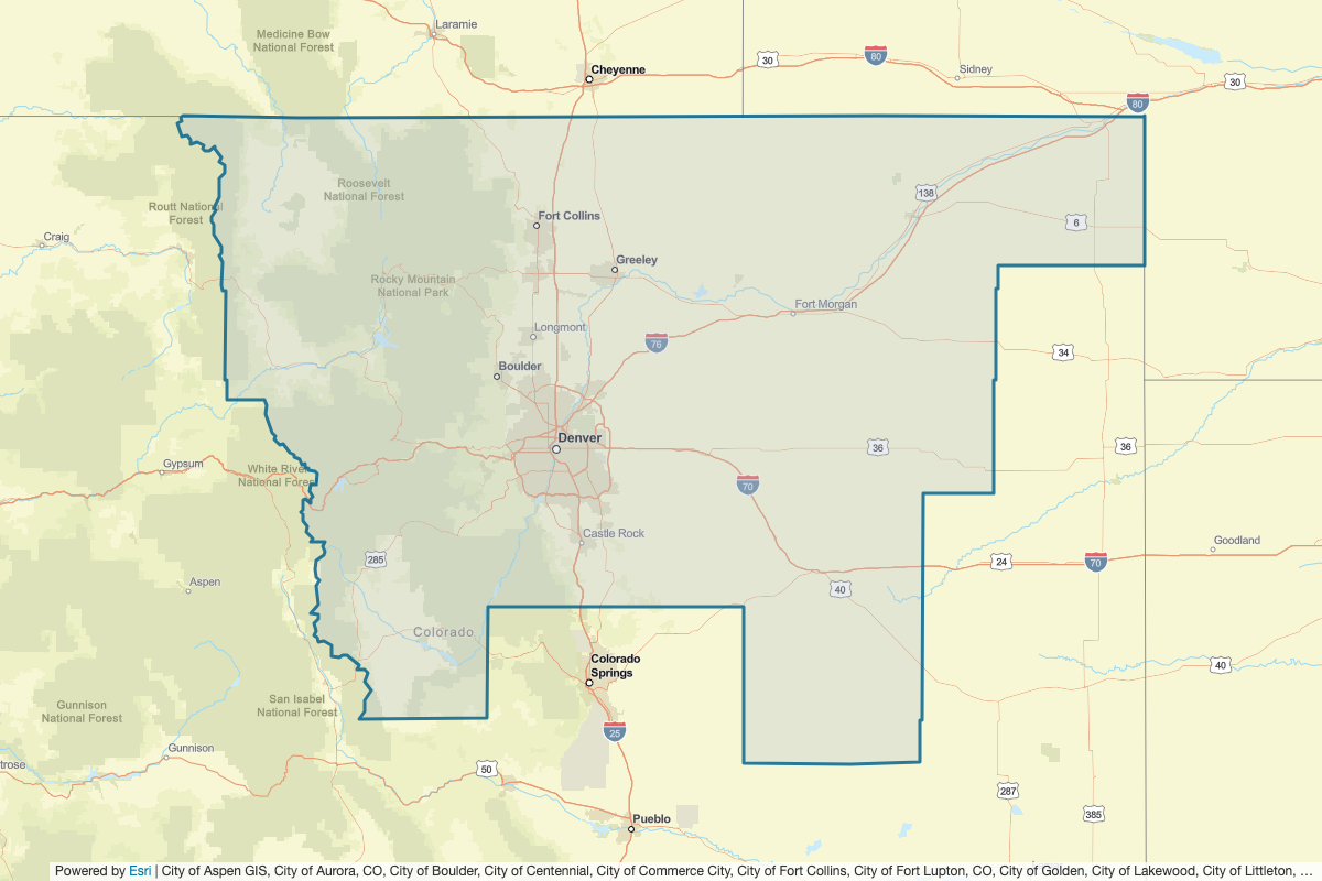 This includes Cheyenne, Crowley, Fremont, Chaffee, El Paso, Kiowa, Chase, Perkins, Kit Carson, Logan, Morgan, Phillips, Sedgwick, Washington, Yuma, Deuel, Kimball, Denver, Cheyenne, Arapahoe, Weld, Elbert, Park, Clear Creek, Adams, Lincoln, Grand, Jefferson, Eagle, Routt, Summit, Larimer, Jackson, Douglas, Boulder, Teller, Lake, Broomfield, Gilpin, Carbon, Albany, and Laramie