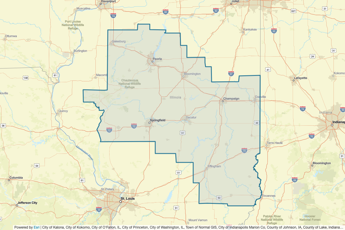 This includes Warren, Vigo, Vermillion, Benton, Knox, Iroquois, La Salle, Henry, Livingston, Logan, McDonough, McLean, Macon, Macoupin, Marshall, Mason, Woodford, Adams, Brown, Bureau, Cass, Champaign, Christian, Clark, Coles, Cumberland, De Witt, Douglas, Edgar, Effingham, Greene, Ford, Menard, Mercer, Montgomery, Morgan, Moultrie, Peoria, Piatt, Pike, Putnam, Sangamon, Schuyler, Scott, Shelby, Stark, Tazewell, Vermilion, Warren, Fulton, Hancock, Knox, Lawrence, Marion, Sullivan, Clay, Crawford, Edwards, Fayette, Richland, Wabash, Wayne, and Jasper